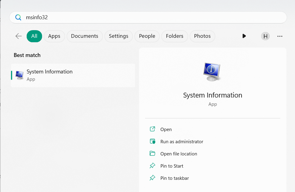 1.Abra a caixa de pesquisa clicando noChave do Windows, tipomsinfo32nele e escolhaExecutar como administrador.