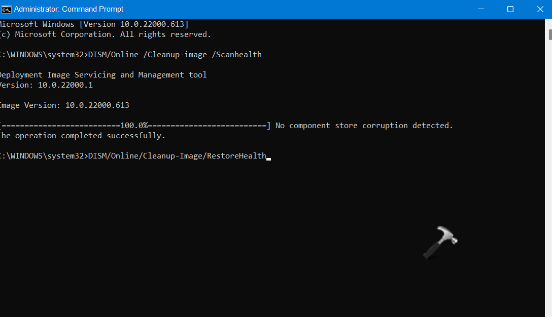 DISM /Online/Cleanup-Image/RestoreHealth