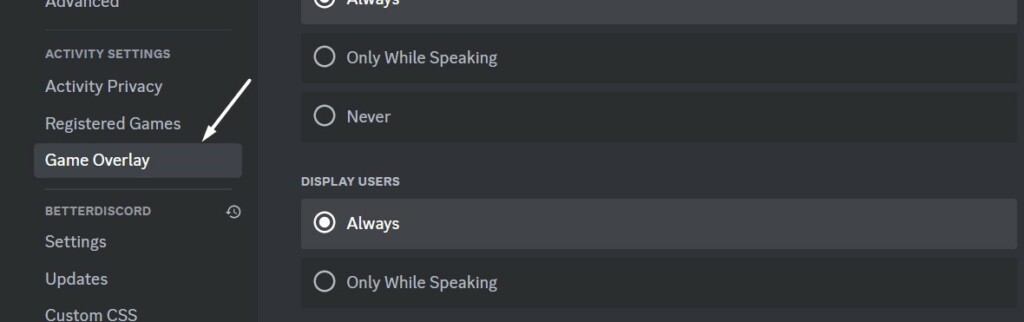 1. Certifique-se de que a sobreposição do jogo esteja habilitada no Discord