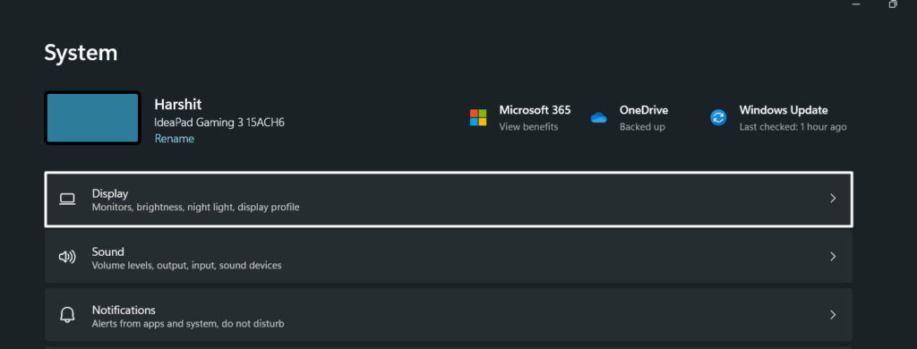 1.Abra oAplicativo de configuraçõesno seu PC e clique noMostraropção noSistemacategoria.