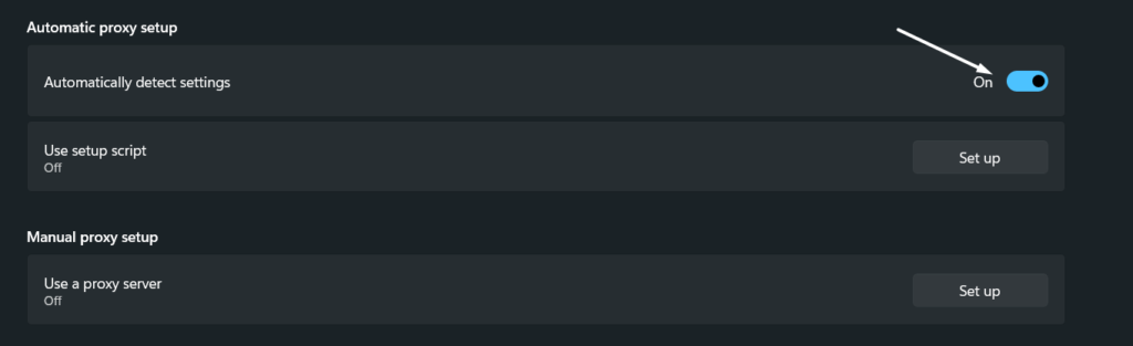 2.Desative oDetectar configurações automaticamentealterne para desativar todos os proxies habilitados em seu PC.