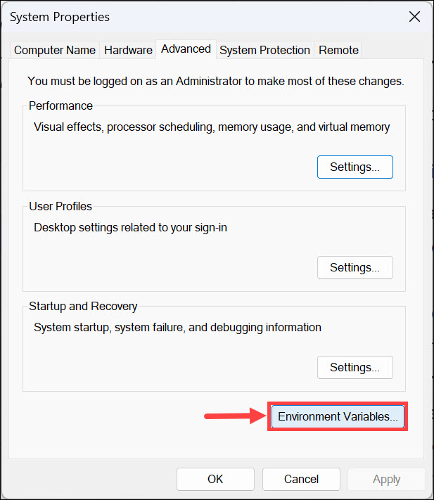 Corrigir variáveis de ambiente que não funcionam no Windows 11