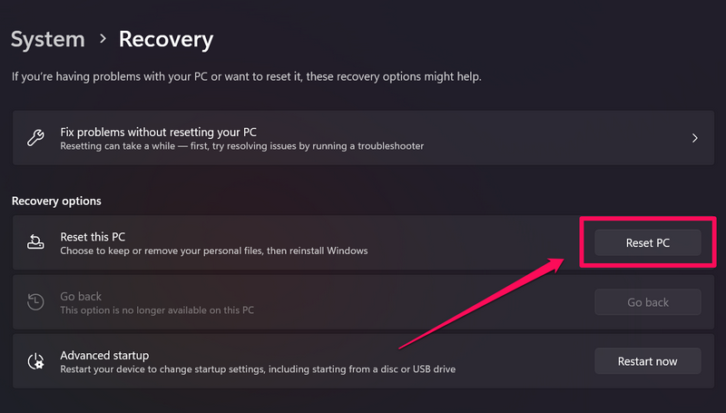 Agora, a última coisa que você pode fazer para tentar eliminar o código de erro BSOD 0xc0000221 em seu PC ou laptop com Windows 11 é redefinir completamente o dispositivo. Redefinir seu PC ou laptop com Windows 11 removerá todos os seus aplicativos e dados e reinstalará o sistema Windows com todas as suas configurações e configurações padrão. Além disso, pode levar muito tempo para reiniciar completamente o computador.