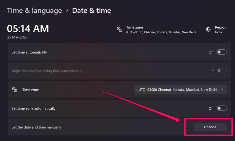 3. Certifique-se de que os dados e a hora estão configurados corretamente em seu PC ou laptop com Windows 11