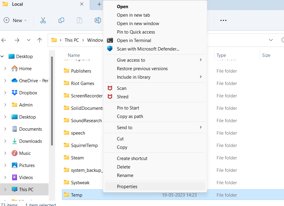 Caso a pasta temporária esteja definida como somente leitura, o Windows não poderá salvar arquivos nela. Você deve estar se perguntando por que isso é um problema. O Windows cria arquivos temporários para todos os tipos de aplicativos, mesmo para aqueles que você tenta instalar. Para isso, a pasta temporária precisa de controle total. E aqui está como isso pode ser estabelecido –