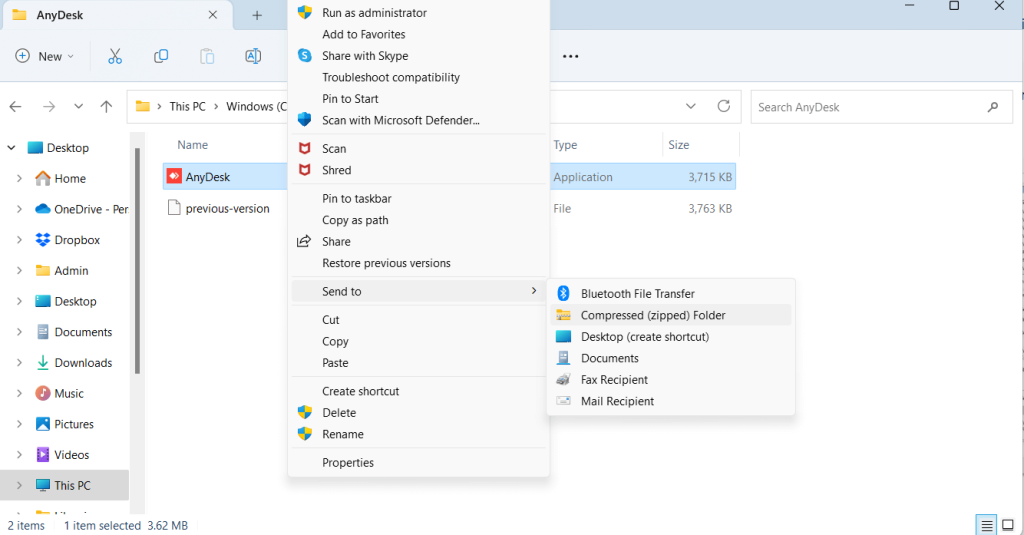 3. Clique com o botão direito no arquivo .EXE e escolhaEnviar para > pasta compactada (zipada).