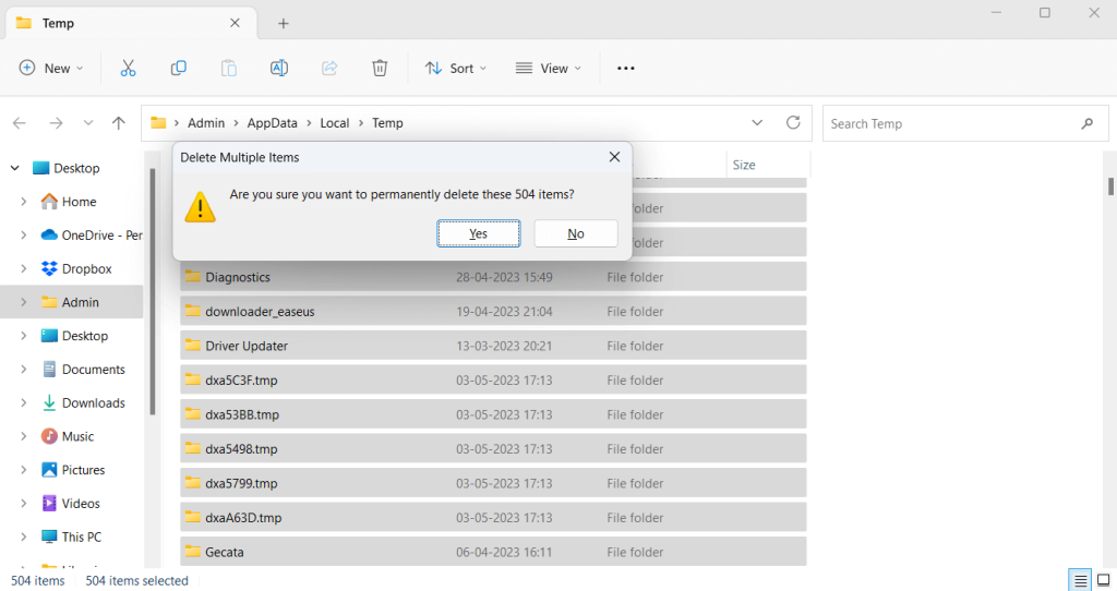 Aqui, gostaríamos de acrescentar que há mais de uma maneira deexclua arquivos temporários no Windows.E, embora seja um processo descomplicado, há momentos em que você pode se encontrar em uma situação em que não consegue excluir arquivos temporários. Se for esse o caso,esse post vai te ajudar.