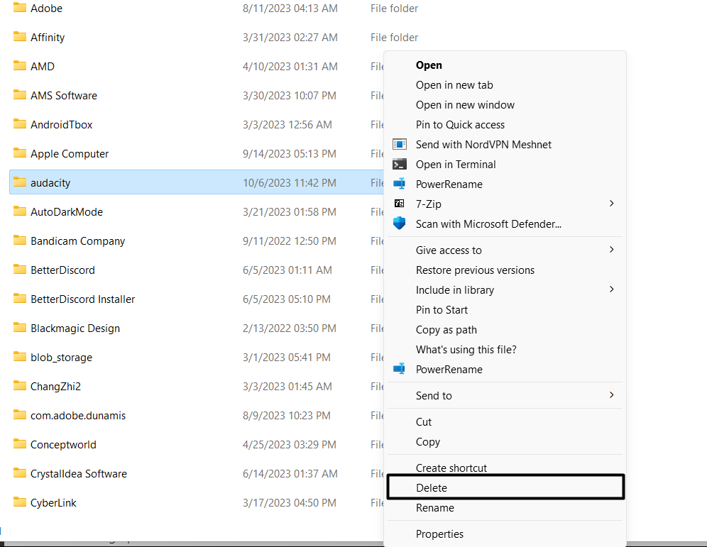 3.No menu de contexto, escolhaExcluirpara excluir a conta de usuário existente e criar uma nova.