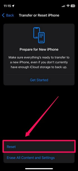 3.Role para baixo até a parte inferior e toque noTransferir ou redefinir o iPhoneopção.