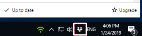 1.Clique com o botão direito noDropboxícone na bandeja do sistema e clique no botãoEngrenagemícone na nova janela.