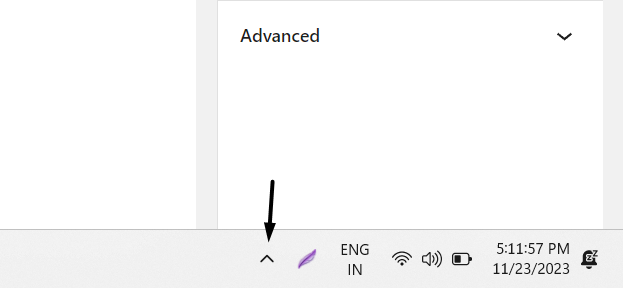 1.Clique noseta para cimano canto inferior direito da área de trabalho para abrir a bandeja do sistema.