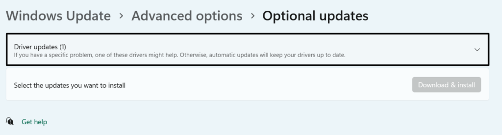 2.Vá paraOpções avançadas>Atualizações opcionaise clique emVerifique se há atualizaçõespara procurar novas atualizações opcionais.