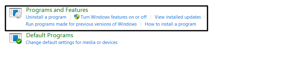 2.NoPainel de controlejanela, escolha oProgramasopção e selecioneProgramas e recursos.