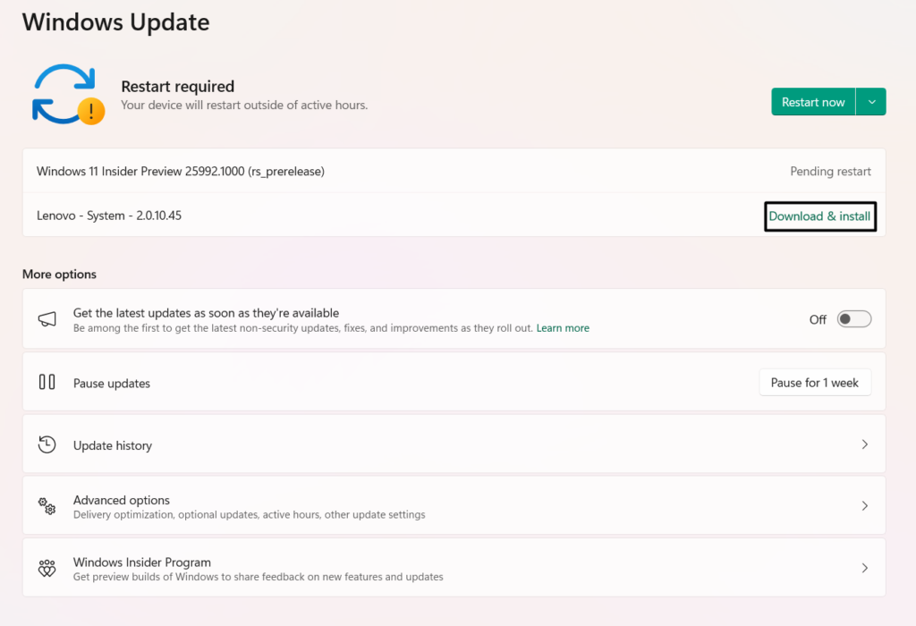 3.Se você vir novas atualizações para instalar, clique emBaixe e instale todospróximo a ele para baixá-los e instalá-los.