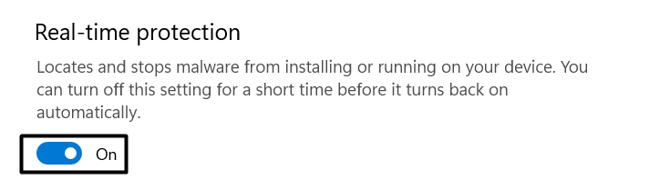 4.SobProteção contra ameaças em tempo real, desative o botão de alternância para desativar o antivírus integrado.