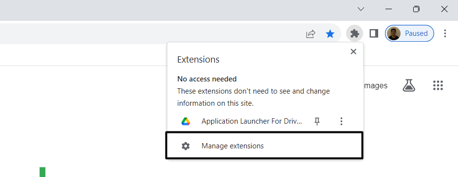 2.SelecioneGerenciar extensõesno menu suspenso para visualizar todas as extensões instaladas.