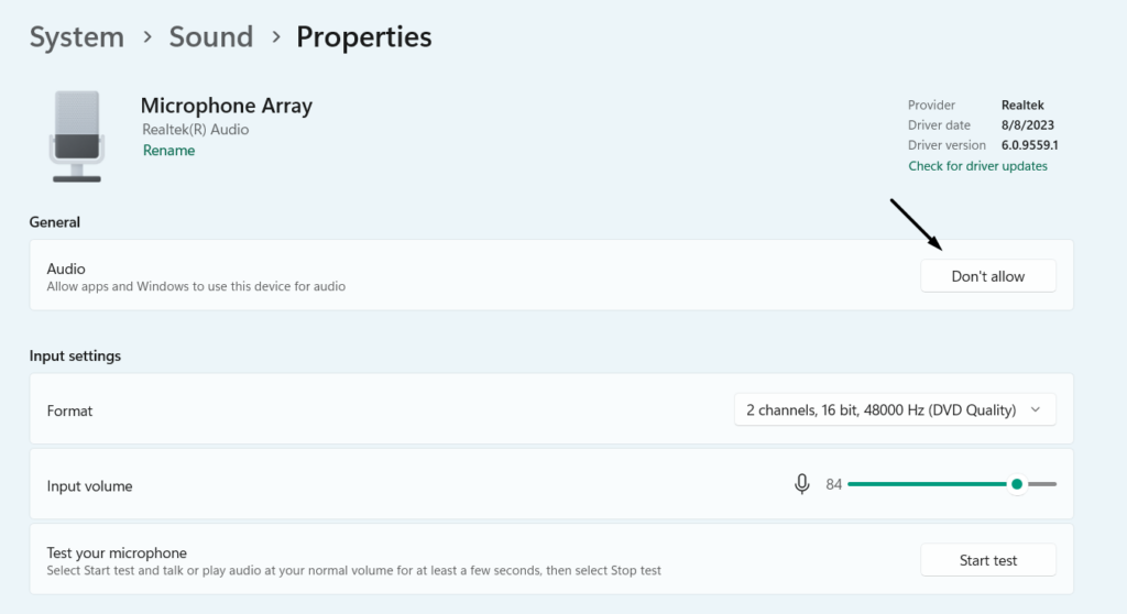 Talvez você não tenha permitido que os programas usassem o microfone para áudio, e é por isso que o microfone não está funcionando corretamente. Então, sugerimos que vocêhabilite a opção “Permitir que aplicativos e Windows usem este dispositivo para áudio” para o seu microfoneno seu PC com Windows 11. Para saber como habilitar esta opção no Windows 11, siga as etapas abaixo: