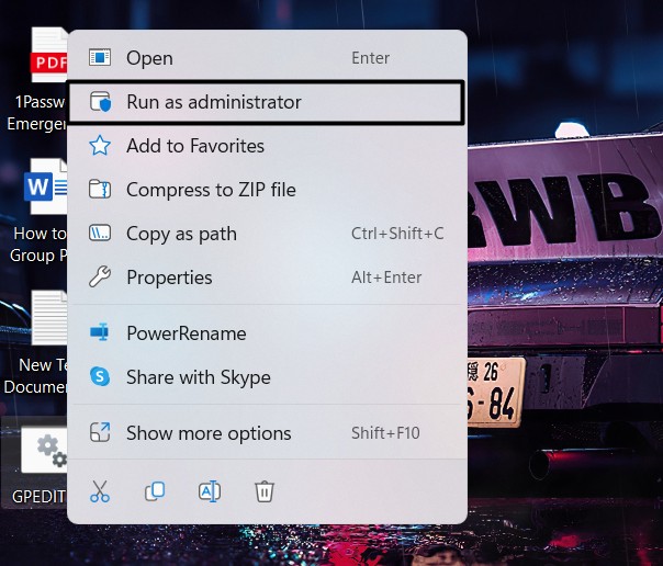 2.Selecione oExecutar como administradoropção do menu contextual e dos resultados da pesquisa, respectivamente.