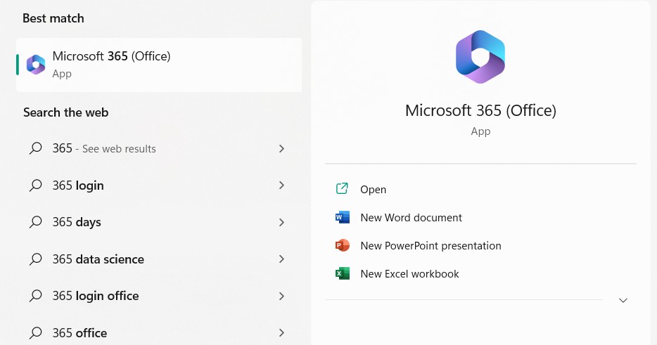 1.Clique com o botão direito noMicrosoft Officeatalho ou pesquise-o usando a caixa de pesquisa do Windows.