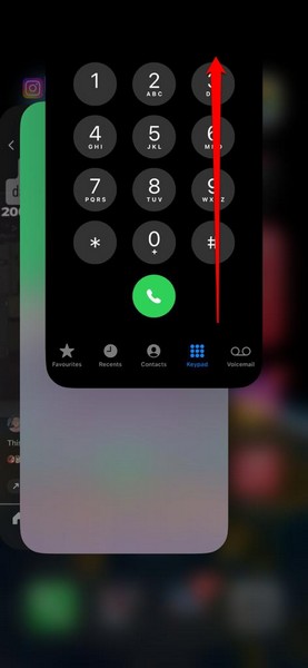 2. Toque e segure o cartão do aplicativo Telefoneedeslize-o para cimaaté que saia do painel multitarefa.