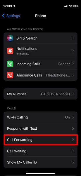 Outro recurso que pode causar problemas para o aplicativo Telefone do iPhone é a opção Encaminhamento de chamadas. Se o recurso estiver ativado no seu dispositivo, ele poderá encaminhar chamadas recebidas para um número diferente, talvez para um número secundário. Embora seja útil para usuários com iPhone dual-SIM, não é a opção ideal para um único número.