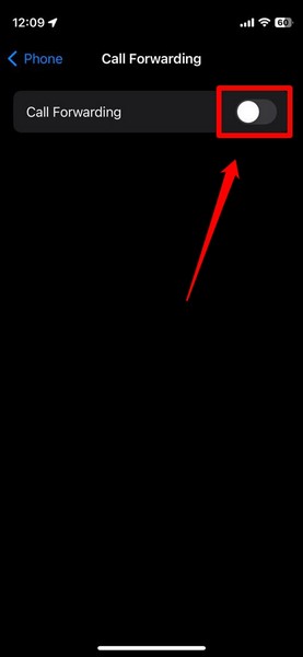 4.Aqui, certifique-sea alternância para a opção Encaminhamento de chamadas está desabilitada. Se estiver habilitado,toque nele para desligá-lo.