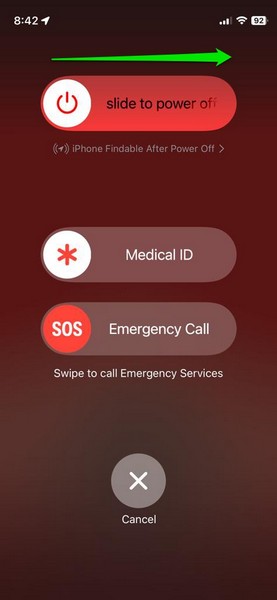 2.Entãotoque e segure o controle deslizante Desligaredeslize-o da esquerda para a direitapara desligar o seu iPhone.