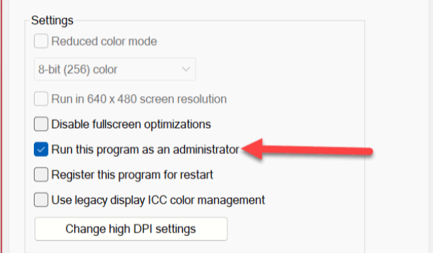 5.Por fim, habilite oExecute este programa como administradoropção noConfiguraçõesseção e clique noAplicaropção na parte inferior para salvar as alterações.