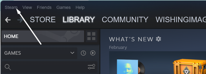 1.Abra oAplicativo Steamno seu PC com Windows 11 e clique noVaporopção no menu superior da faixa de opções.