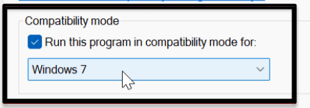 4.Depois disso, habiliteExecute este programa em modo de compatibilidade paranoSeção Propriedadese selecione oJanelas 7opção no menu suspenso.