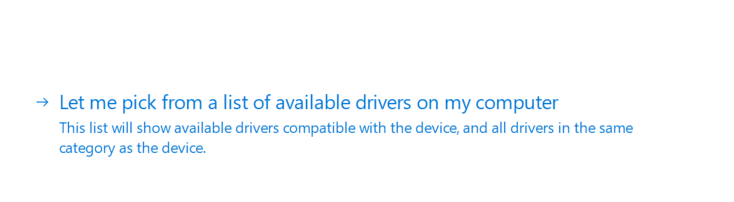 7.SelecioneProcure drivers no meu computadore então escolhaDeixe-me escolher em uma lista de driversno meu computador.