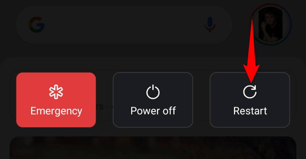 - SelecioneReiniciarno menu para desligar e ligar novamente o telefone.