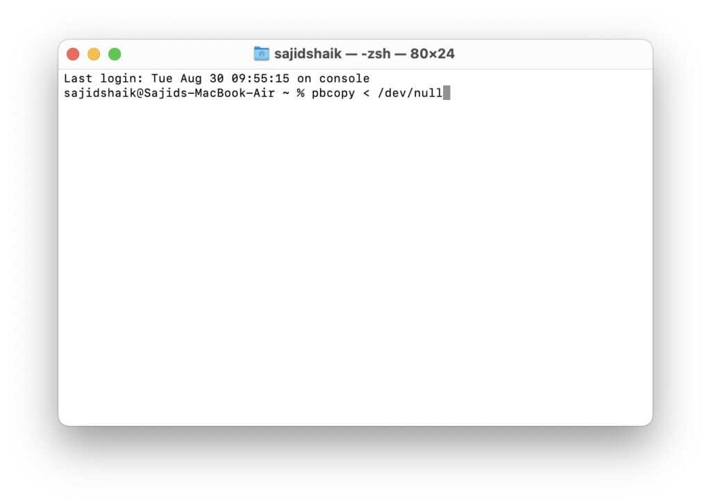 2.Copie e cole o seguinte comando no Terminal:pbcopy < /dev/null