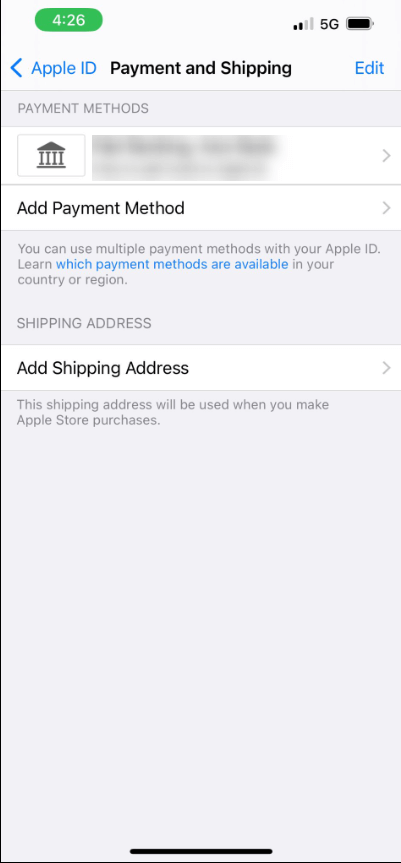 3. Selecione seuMétodo de pagamentoe toque emEditarna próxima tela para alterar suas informações de pagamento.