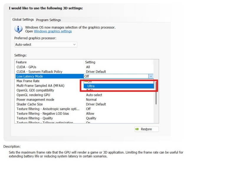 5. Habilite o modo de baixa latência no painel de controle NVIDIA no Windows 11