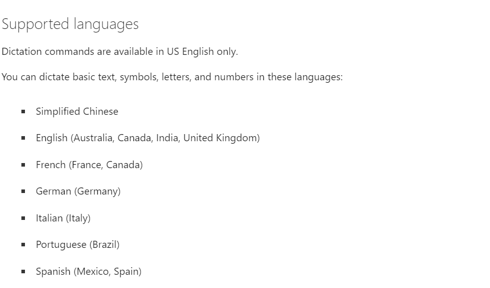 A digitação por voz ainda não está disponível em todos os idiomas. Só está disponível noidiomas mencionados. Portanto, se você estiver tentando usar a digitação por voz em qualquer outro idioma não listado, claramente não funcionará.