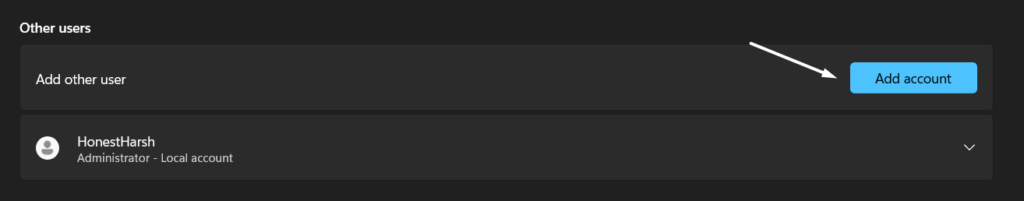 2.SelecioneOutros usuáriossob oConfigurações de Contaseção e clique no botãoAdicionar contabotão.