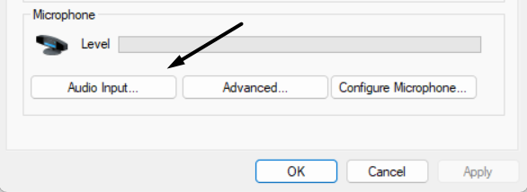 3.Clique noEntrada de áudio…opção abaixoMicrofonee selecione o dispositivo que deseja definir como padrão.
