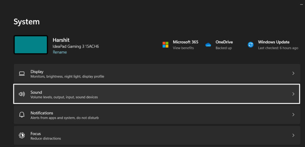 1.Inicie oAplicativo de configuraçõesno seu PC com Windows 11 e navegue até oSomseção dele.