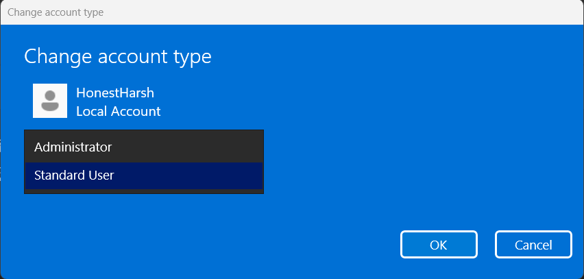 8.Defina oTipo de contamenu suspenso para oAdministradoropção e cliqueOKpara aplicar as alterações.