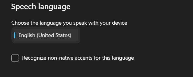 3.Selecione seu idioma de fala preferido noLinguagem de falamenu suspenso e marque oReconheça sotaques não nativos deste idiomacaixa de seleção.