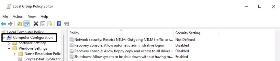 1.AbrirEditor de Política de Grupono seu PC com Windows e selecioneConfiguração do computadorna barra lateral esquerda.