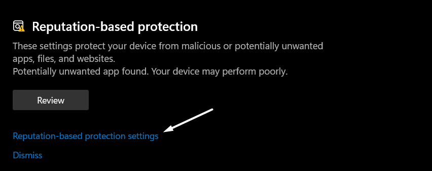 2.Clique noConfigurações de proteção baseadas em reputaçãoopção noProteção baseada em reputaçãoseção.