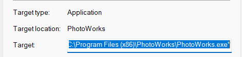 2.Vá para oAtalhoseção e verifique a localização do arquivo naAlvocampo.