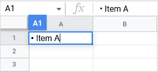 Este método é ideal se você deseja criar uma lista com marcadores em uma única célula. Você usará atalhos de teclado para inserir a lista. As teclas que você pressiona dependem se você usa Windows ou Mac.