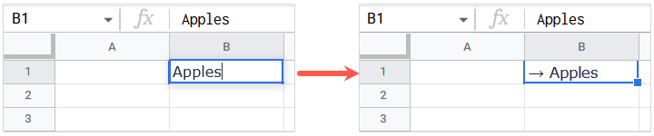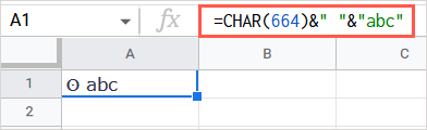 Para outro exemplo, inseriremos o marcador e incluiremos um espaço com “abc” como nosso item de lista usando esta fórmula: