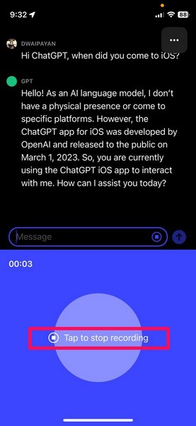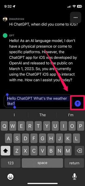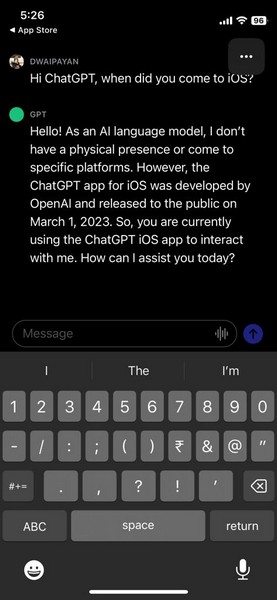 Agora, no que diz respeito ao uso e aos recursos do novo aplicativo ChatGPT para iOS, eles são bastante semelhantes aos do cliente web. No entanto, existem alguns recursos adicionais que o OpenAI integrou ao aplicativo ChatGPT iOS para torná-lo mais fácil de usar em dispositivos móveis.