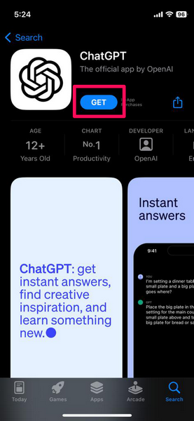 Você pode pesquisar o aplicativo ChatGPT oficial para iOS na Apple App Store ou ir para a tabela Principais aplicativos gratuitos na App Store e “Obter” o aplicativo ChatGPT instalado em seu iPhone.
