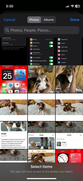 Agora, o aplicativo selecionado terá acesso total ao aplicativo Fotos do seu iPhone no iOS 17.