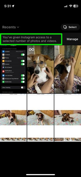 Também é importante notar quese você capturar uma imagem ou vídeo com o aplicativo Instagramno seu iPhone, o aplicativo irá naturalmenteter acesso automático a elee a mídia será adicionada à lista de mídia de acesso limitado do Instagram.